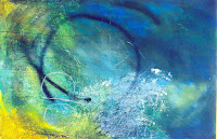 This work, for instance, beganns with a blue underpainting, then I put over a layer of acrylic gesso, over that I scrap words, like "pain" and other words, thain I applied more paint layers. At last I spraied over it like a graffiti. You can not see the words, they are hidden on the layers of paint. But they are there. Some of my works have 10 or more layers of thinny paint coats.